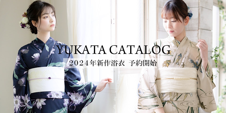 特にどれ一つとして同じ色のない地色がポイントです。一見、同じベージュやアイボリー系に見える地の色でも、グレイッシュな黄み色、やや赤みの色、わずかに緑を帯びた色などの違いがあります。現在はパーソナルカラー診断を受けるなど、より自分に調和し、魅力を引き出す色を身に着けたいという女性のニーズが高まっていますが、繊細なニュアンスカラーを地の色に使用した2024年新作浴衣は、そういった希望に応えられるコレクションとなっております。