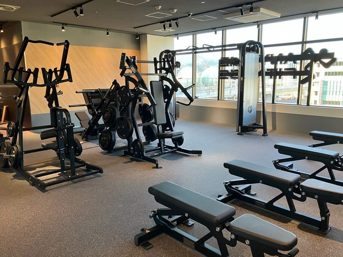 ・施設内5階にある店舗外装を一面ガラス張りにしたことにより、新幹線や街の景色を眺めながら、明るく開放的なワークアウト環境