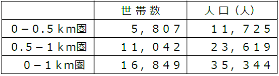 ・主たる商圏として、東は夕凪、西は港晴、南は八幡屋、北は田中までを想定しております。