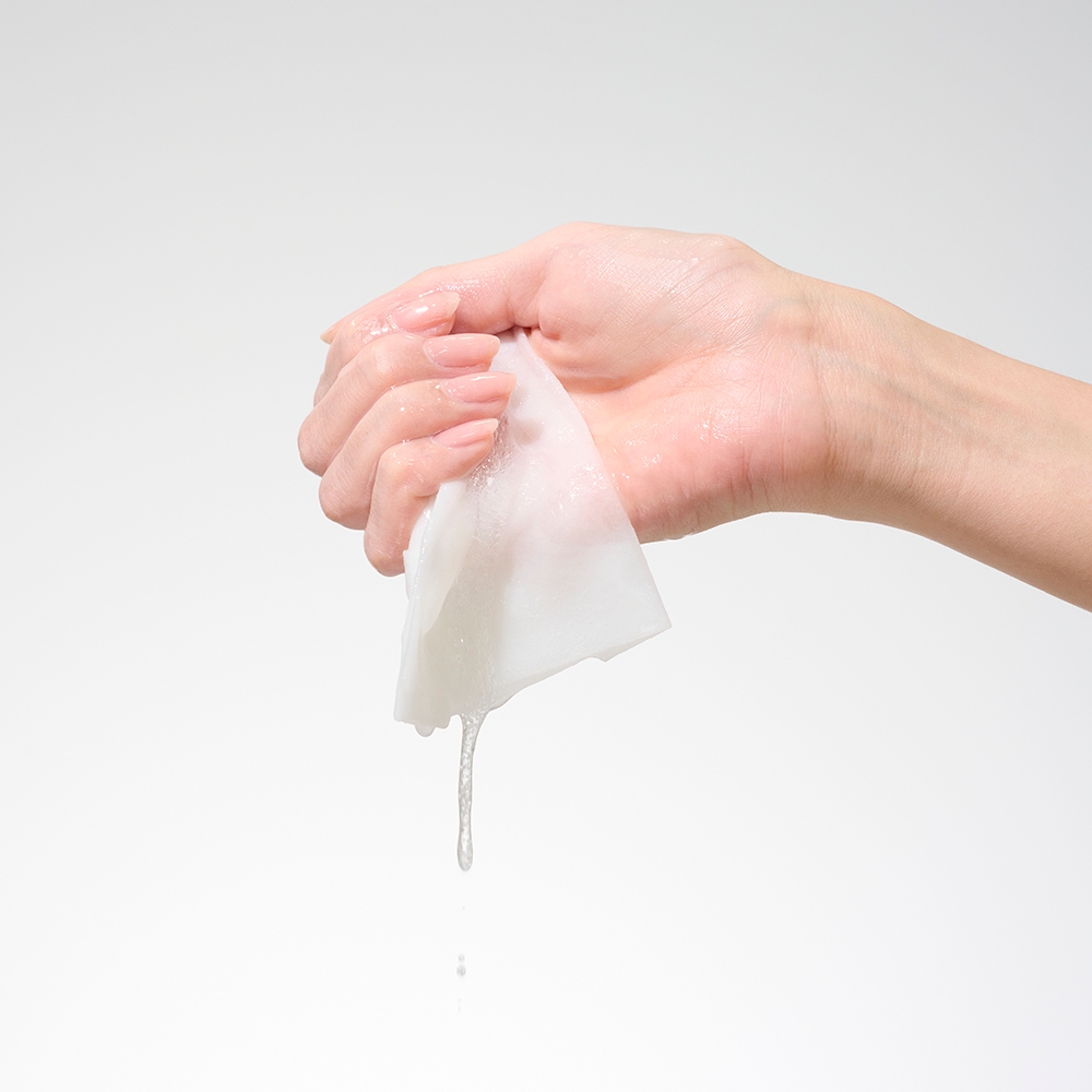 美容液をひたひたに含んだ肌あたりの優しいシートが、お肌を潤いで優しく包みこみます。