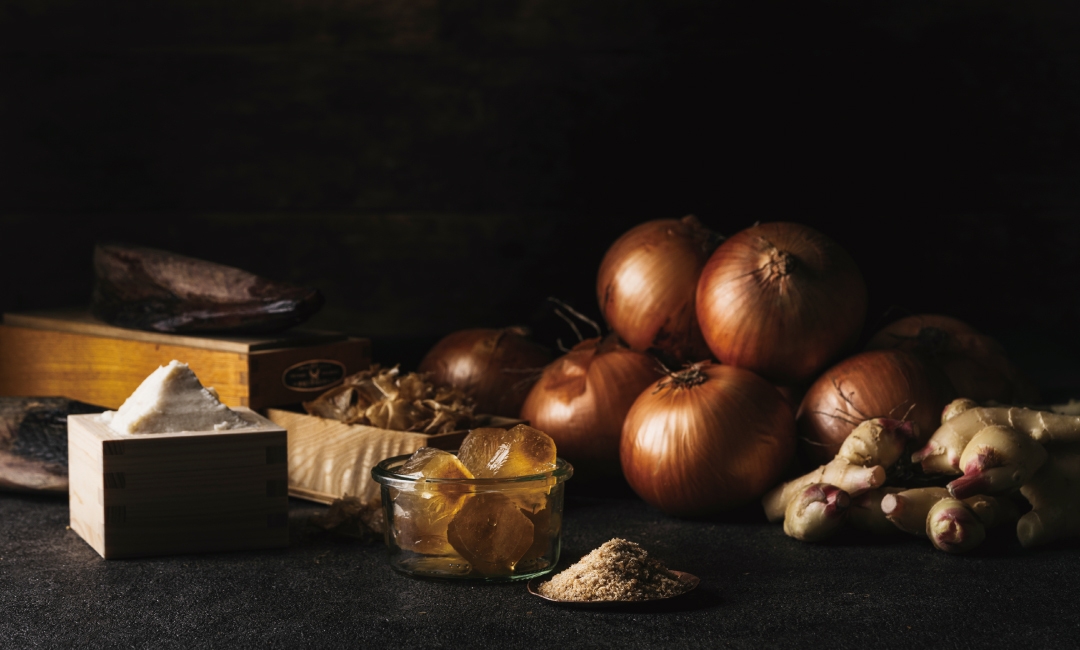 鰹節(鹿児島)、酒かす(山口)、玉ねぎ(兵庫)、生姜(国産黄金生姜)、醤油(福岡)と、原料を国産にこだわって使用。素材本来の味と安心感を提供します。