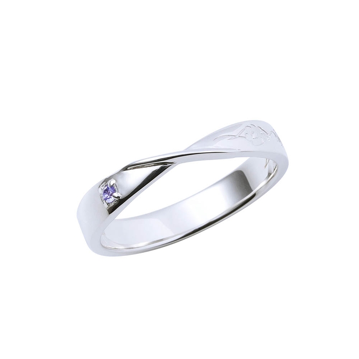 ひねった平打ちフォルムの表面に和服の朝顔の刻印とイメージカラーストーンをセット。
