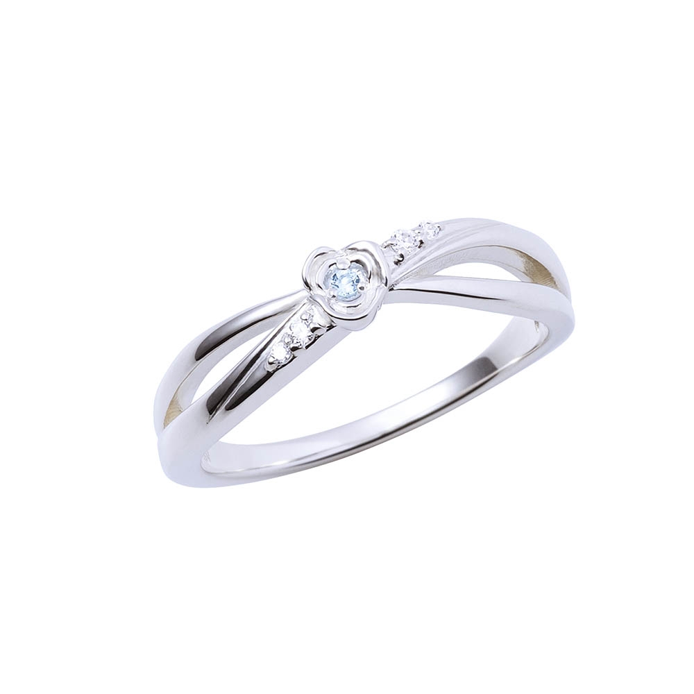クロッシングフォルムの中央にバラモチーフとイメージカラーストーンをセット。