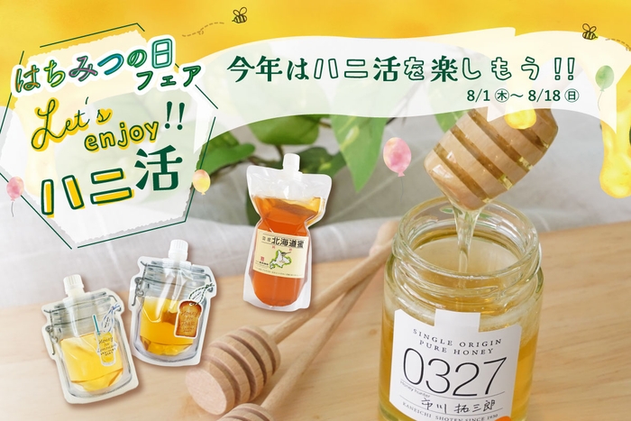 株式会社金市商店(本社:京都市中京区三条通富小路西入中之町 21)は、8月3日の「はちみつの日」を記念して、自社が運営する蜂蜜専門店ミールミィ各店で2024年8月1日(木)から「はちみつの日フェア」を開催いたします。『ハニ活を楽しもう』をテーマに、「蜂蜜」を生活に取り込んでより素敵な時間を過ごせるような様々な企画を実施。
