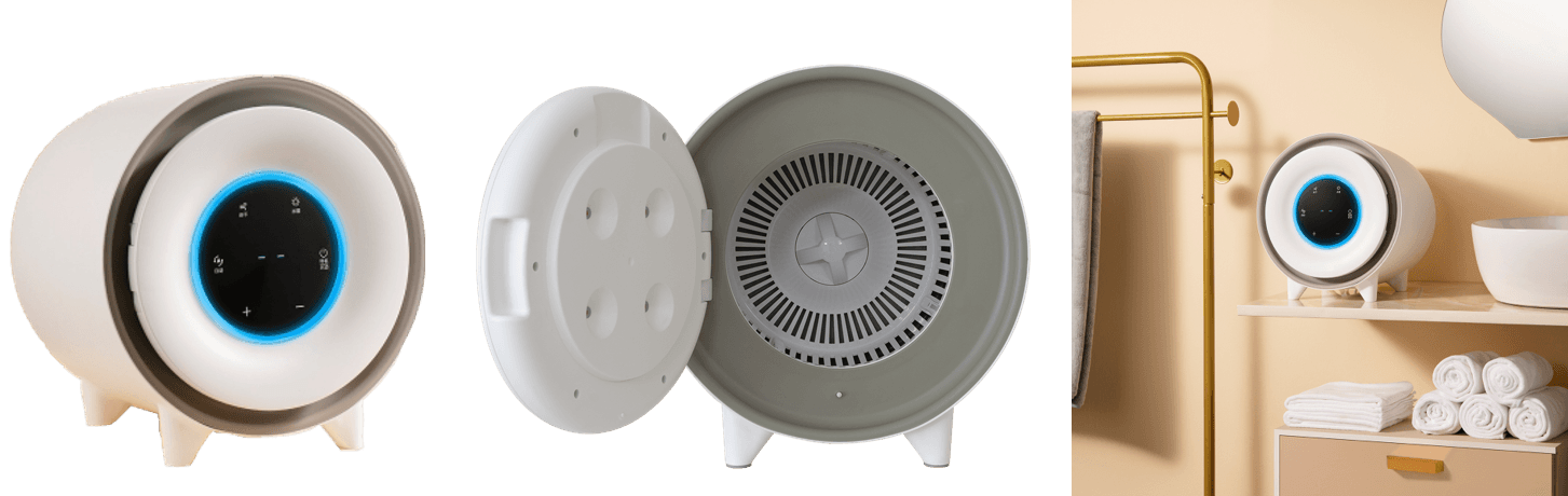 0.8kgタイプは重量約2.2kgで高さ29.8cm×幅28cm×奥行き25cmと、いずれも30cm未満という軽量コンパクトでありながら、タッチパネルで「自動」「乾燥」「除菌」の運転モードを選択することが可能。除菌モードは紫外線LEDで除菌のみを行い、さらに運転モードを緑・赤・青のLEDライトでお知らせ、誤作動防止機能など、コンパクトさからは想像できないような機能性で、インテリアに馴染みやすいデザインも大きな特徴の1つ。急ぎで乾かしたいハンドタオル・小物類や頻繁に交換するベビー服やスタイ(よだれかけ)などを乾燥/除菌するのに活躍する一品。