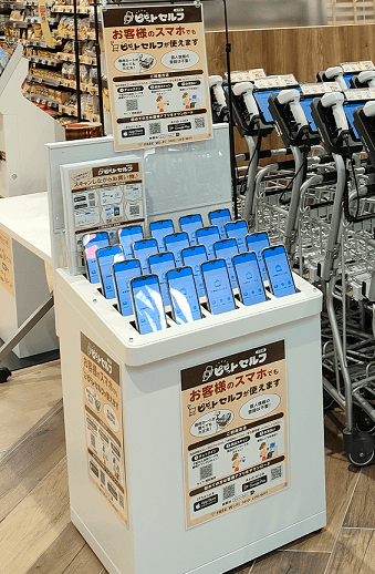スマートフォンで商品バーコードをスキャンしながらお買物ができる「ピピットセルフスマホ」。