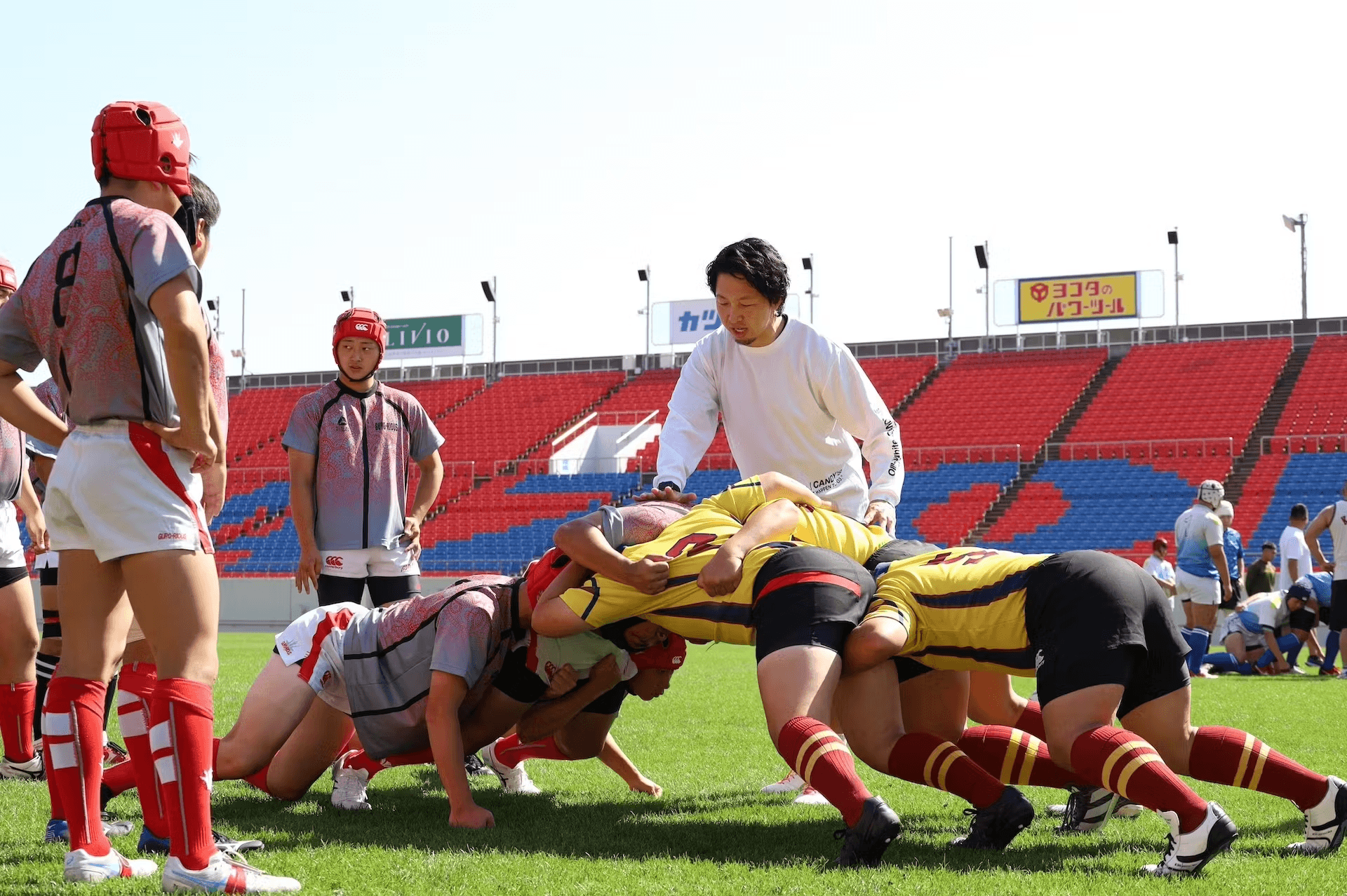 2023年に初開催。高校ラグビーの聖地と呼ばれる「東大阪市花園ラグビー場」にて高校年代の選手やスタッフの皆様に参加いただき、ラグビー界のトップ選手やコーチ、元日本代表選手による指導を受け、ラグビーの技術向上にもつながるイベントです。