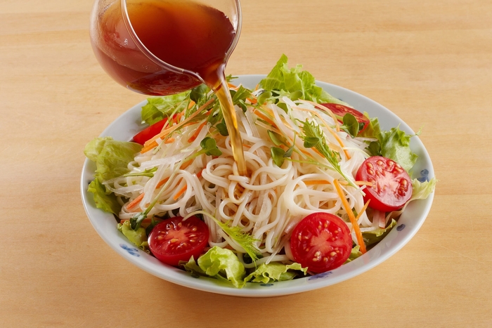 過去に一度期間限定で販売した柚子つゆが大変ご好評いただいたため、再度販売を待ち望む声にお応えし、さらに美味しくなって再登場!徳島県産の柚子果汁の爽やかな香りと酸味のある中華風のつゆです。しょうゆベースで、まろやかな深みのあるカツオ出汁と香ばしいごま油の風味が良く、オカベの麺にもピッタリです。
