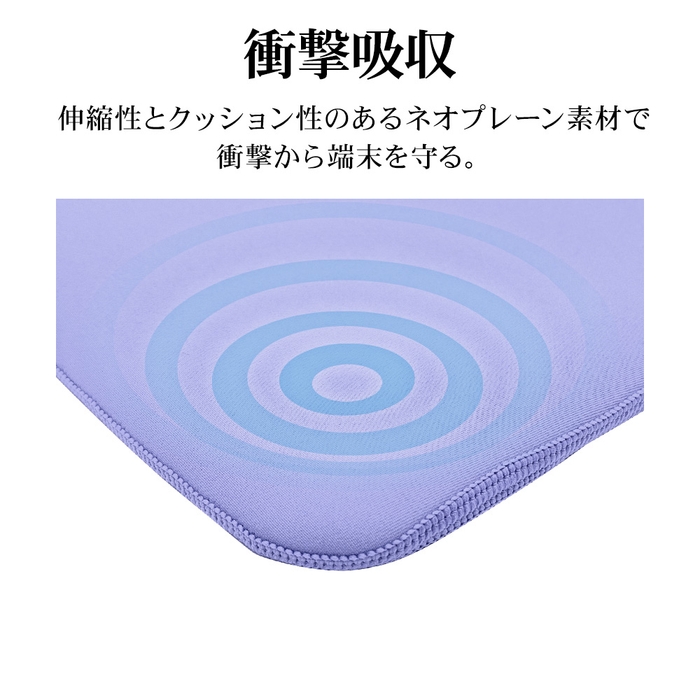 伸縮性とクッション性のあるネオプレーン素材で衝撃から端末を守る。