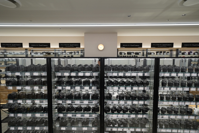 今回のリニューアルで、124坪の広い売場の中でも中古カメラの売場を拡大し、九州最大級の品揃えとなる約3,000点の品揃えを手に取ってご覧いただけます。お客さまのご要望に合わせて、新品カメラだけではなく質の高い中古カメラやレンズを組み合わせた最適なご提案をいたします。