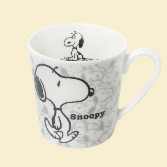 癒しキャラのスヌーピーがてんこ盛りのデザインです♪メインのスヌーピー意外に、下地部分にうっすらと描かれたたくさんのスヌーピーが!カップの内側にまでスヌーピーがデザインされています。