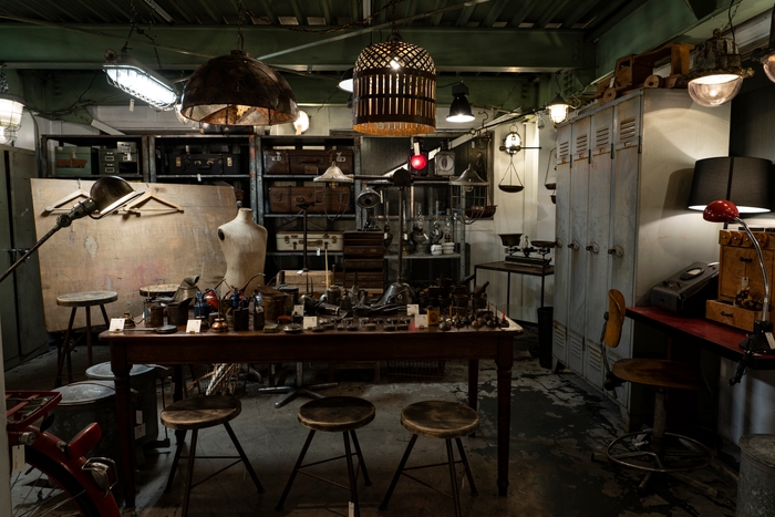 左官や漆喰によって作り出される、極限まで削ぎ落とされたジャパンブラックな空間。そんな閑かな空間に、世界中から集められたヴィンテージ家具やアートが配置され、“世界の暮らし”に触れ合うことのできる空間が誕生します。展示されている家具や雑貨、アートなどは全て購入可能で、実体験を通じた新しい小売の提案も行います。家具やアートは定期的に入れ替えを行い、常に新たな発見を楽しめる空間になります。