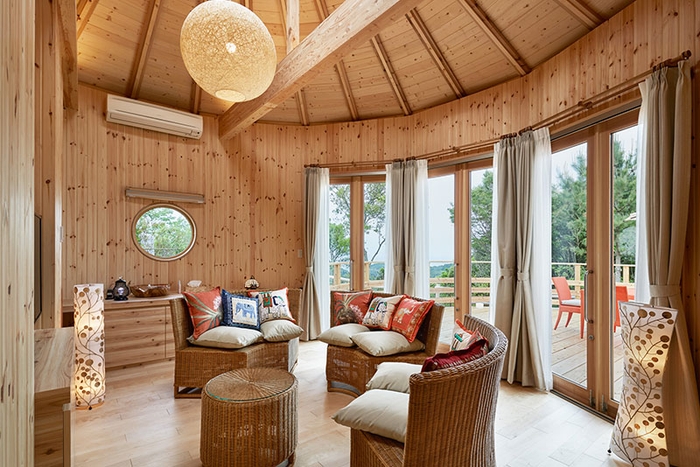 グランシャリオ北斗七星135°は、全23室の客室は繭(コクーン)を思わせる空間で、 高さ5メートル以上の天窓から眺める朝日や星空は、まさに絶景。食事は、国内外に13店舗のお店を持ち、日本代表マスターシェフである山下春幸氏が監修。「御食国」として朝廷に食材を納めてきた食の宝庫、淡路島の食材にこだわった料理を堪能できます。