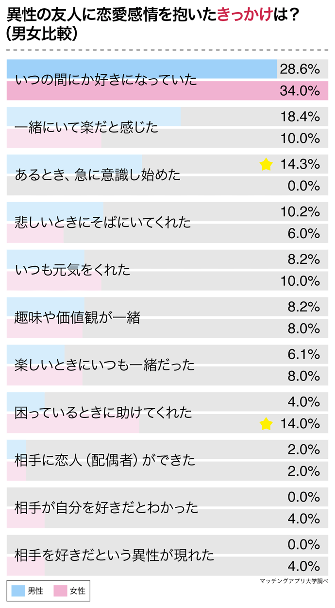 異性の友人を好きになったきっかけは「いつの間にか」が3割で最多