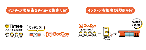 学生利用率が高いタイミーを活用することで、より幅広い学生にグッデイを知って頂き、インターンシップに参加することが可能となります。