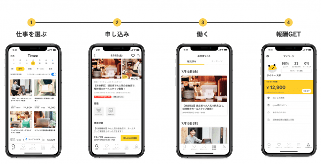 企業は来て欲しい時間や求めるスキルを登録するだけで、条件にあった働き手が自動マッチングします。