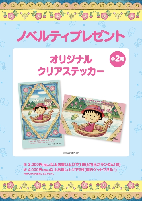 会計2,000 円(税込)以上ご購入ごとにオリジナルクリアステッカーをランダムで1枚プレゼントいたします。4,000 円以上(税込)ご購入で全2枚コンプリート。