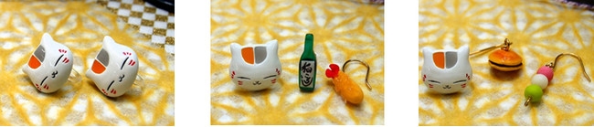 ・ピアス(ニャンコ先生+酒+エビフライ) ¥2,398(税込)