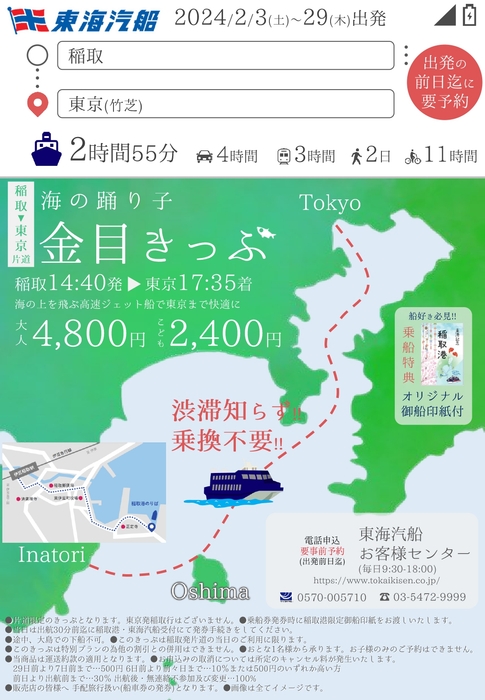 ご予約・お問合せは東海汽船の公式HPからお願いします。
