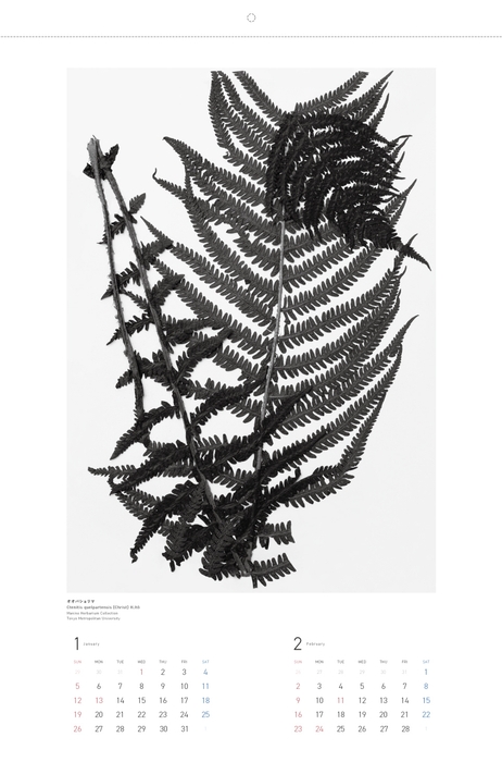 朝の連続テレビドラマの主人公モデル牧野富太郎氏が収集した、東京都立大学牧野標本館が所蔵する標本約16万点の中から、“エゾノリュウキンカ”をはじめとする北海道利尻島で採取された植物のみをピックアップし、世界最高水準の1億5千万画素のデジタルカメラと技術を駆使して撮影しました。肖像写真のように真っ直ぐに光を当てて撮影することで、植物の微細な陰影が立体的に映し出された「新たなボタニカルアート」ともいえる標本写真カレンダーです。牧野博士の利尻島の植物への強い想いとその植物の息吹を感じながら、2025年をお過ごしください。