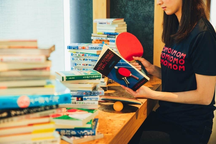 イベント期間中、館内の「OMOベース」に、「ピンポンラウンジ」が誕生!ファンはもちろん、これまでピンポンにあまり触れたことが無かった人も、ピンポンへの興味がそそられる空間です。本イベントのオリジナルデザインが施された卓球台が置かれており、誰でも気軽にピンポンを楽しめます。ピンポン球が跳ねる小気味よい音が、気分を高めます。また、世界選手権で使われていた卓球選手のユニフォームを展示。ピンポンラウンジの一角には、卓球専門誌「卓球王国」の歴代バックナンバーの表紙をコラージュしたアートウォールがあります。卓球の漫画や教本、ノンフィクションの書籍も100冊以上揃えてあり、ピンポンの歴史を気軽に知ることができます。