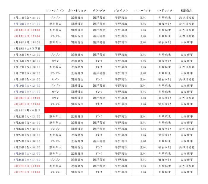 そして今回、トリプルキャスト、ダブルキャストのキャスト出演スケジュールが決定!!