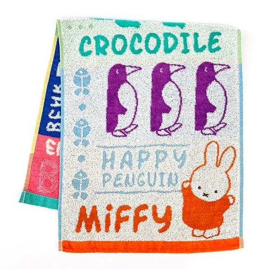 ミッフィーの楽し気なイラストが描かれたタオルです。