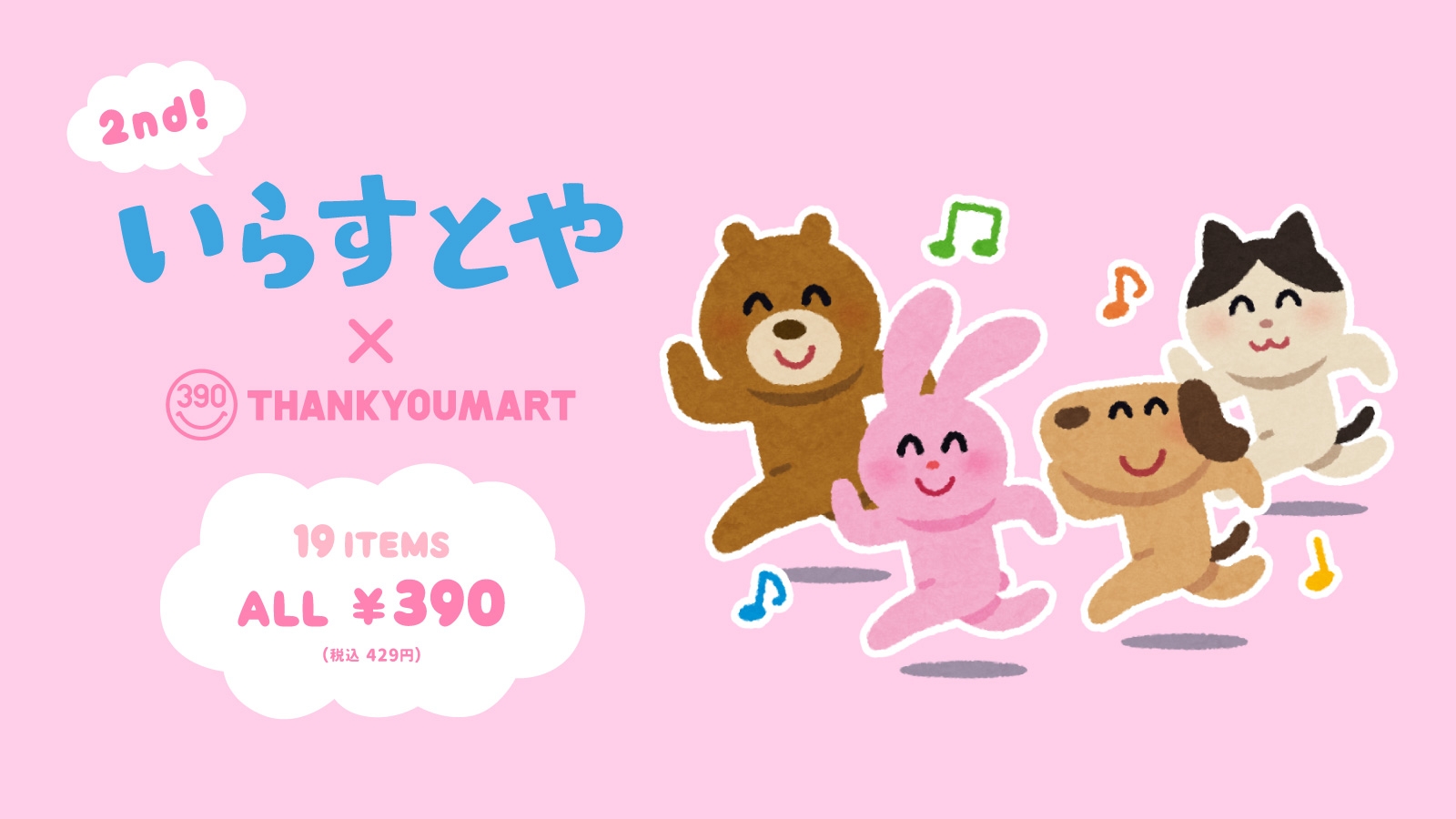 全品390円の雑貨屋「サンキューマート」から、大人気素材サイト「いらすとや」のコラボグッズ"第2弾"が5月21日(金)新登場!