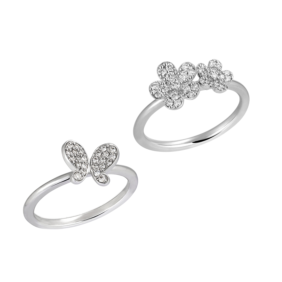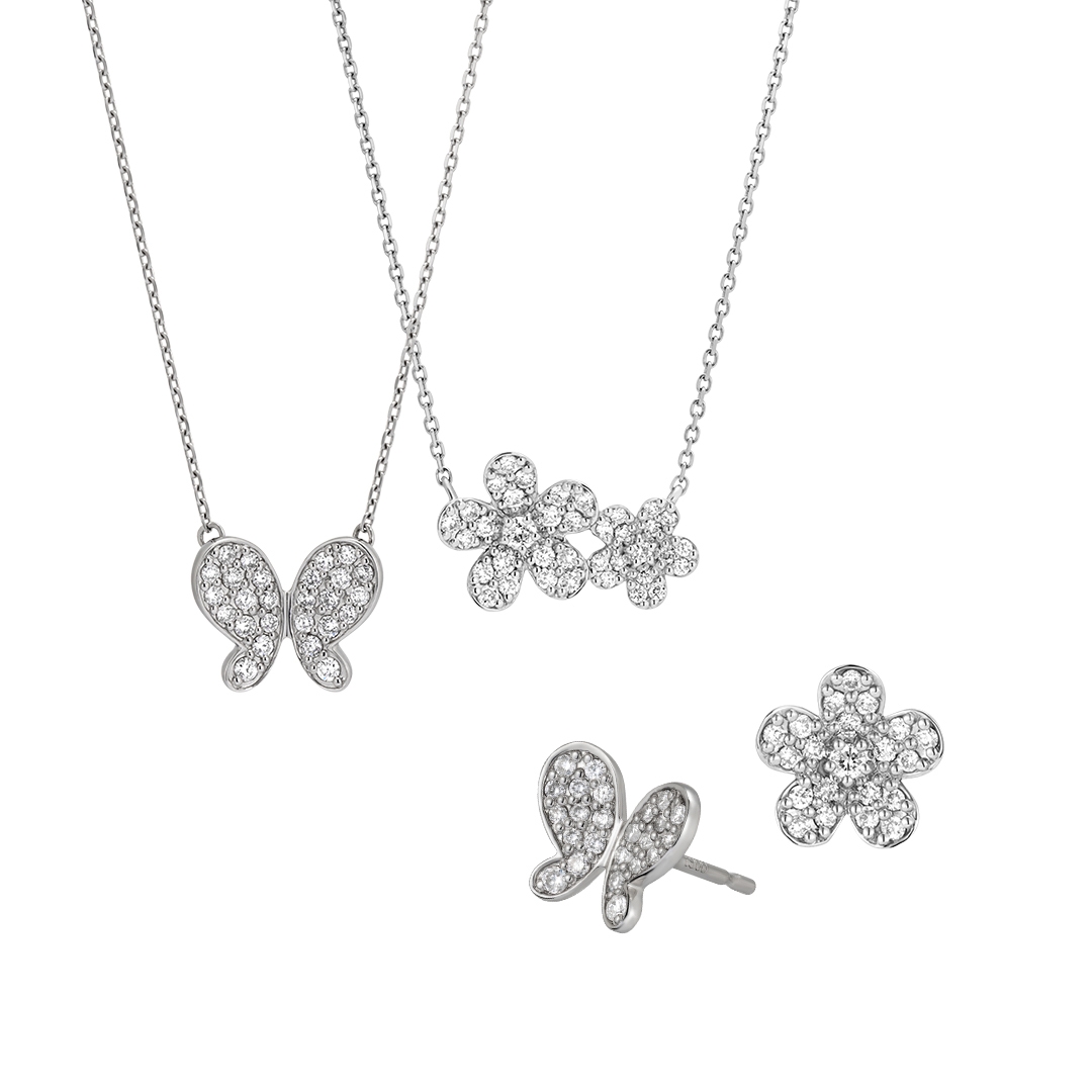 パヴェセッティングでダイヤモンドを隙間なく敷き詰めた、ロマンティックなフラワー・バタフライモチーフ。ふんわりとした花びらを表現した立体的なデザインからは美しい花々の生命力が感じられ、思わず周囲の視線を惹きつけます。バタフライモチーフは羽に角度を付け、今にもひらひらと飛んでいきそうな躍動感のある蝶の姿を表現。丸みのあるフォルムで可憐な雰囲気がありながらも、しっかりと存在感を放ちます。片耳用ピアスは左右で同じデザインを着けるだけでなく、ほかのイヤージュエリーと組み合わせてアシンメトリーなコーディネートをお楽しみいただけます。フラワーモチーフは愛情や美しさ、幸せの象徴とされ、バタフライモチーフは美の象徴、飛翔・上昇の意味があるとされるラッキーモチーフ。お守りジュエリーや、大切な方へのプレゼントにもおすすめです。