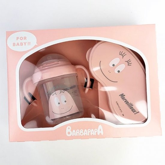 バーバパパのお出かけ離乳食容器とストローマグのセット!淡いパステルカラーで目にも優しい!仕切り付きのお出かけ離乳食容器はとっても便利です。