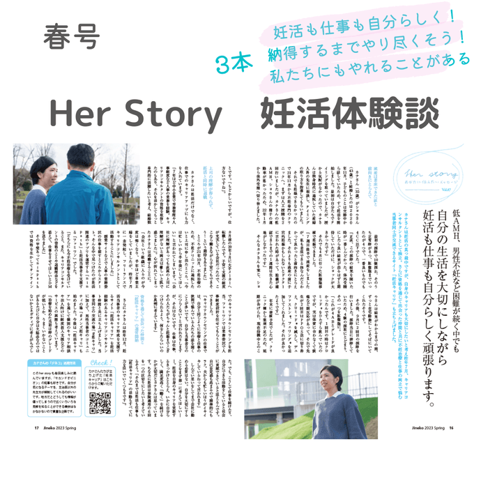 さらに、皆さんからの相談に先生方が回答する「セカンドオピニオン」、「40代の不妊治療」、春の行楽や普段のお弁当にもう1品♪ 妊活レシピ「Jineko Cooking」などなど、無料で妊活に必要な最新情報が盛りだくさんです!