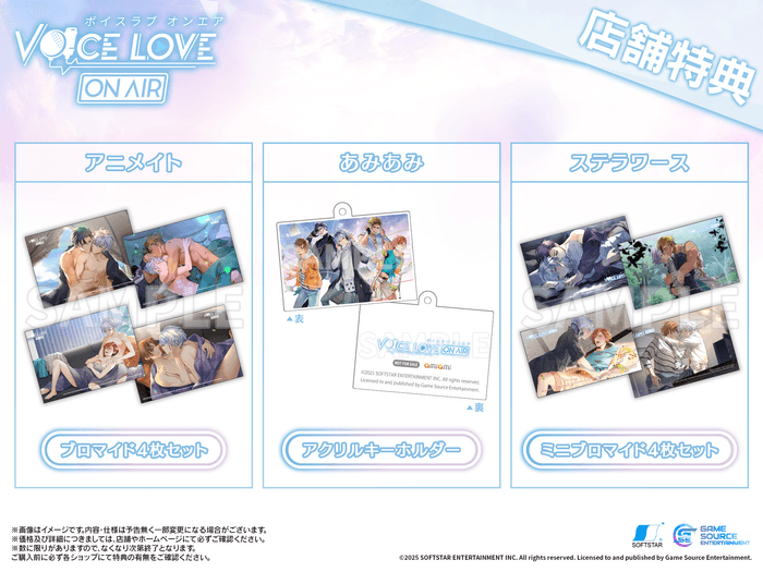 Game Source Entertainment(香港、以下 GSE)は、SOFTSTAR ENTERTAINMENTが開発し、GSEがグローバルパブリッシングする、ラジオドラマの収録を中心としたBL恋愛シミュレーションゲーム《Voice Love on Air》の日本語パッケージ版を2025年9月4日にNintendo Switch(TM)で発売し、2025年6月10日より予約受付を開始することをお知らせいたします。
