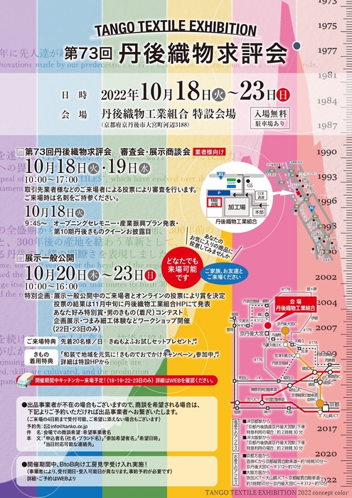 丹後織物求評会A4チラシ(PDF) : https://tanko.or.jp/wp/wp-content/uploads/2022/09/73tirasi.pdf