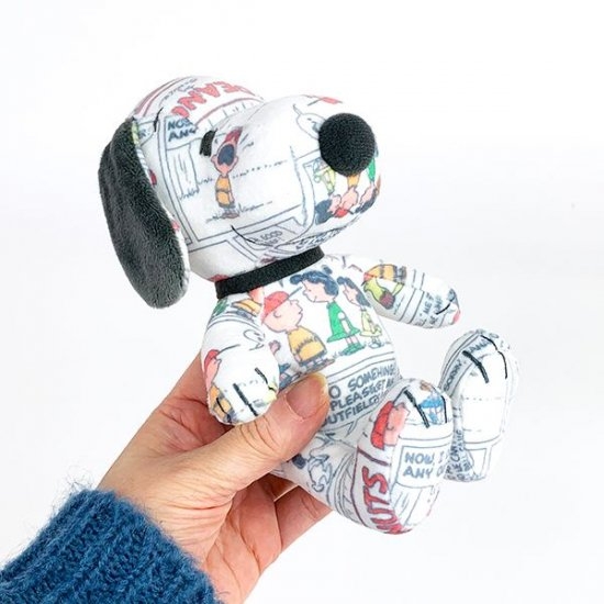 60年代のコミックがプリントされた、スヌーピーのぬいぐるみです。全身コミック柄で、いつもとはかなり雰囲気も違いますよね。柄の出方は一体ずる異なるので、一点物感覚のドールです。