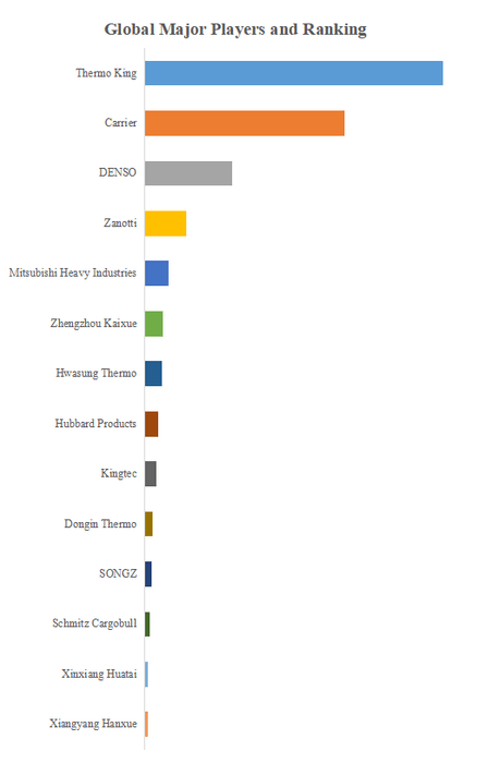 YHResearchのトップ企業研究センターによると、輸送用冷凍ユニット(TRU)の世界的な主要製造業者には、Thermo King、Carrier、DENSO、Zanotti、Mitsubishi Heavy Industries、Zhengzhou Kaixue、Hwasung Thermo、Hubbard Products、Kingtec、Dongin Thermoなどが含まれている。2023年、世界のトップ5企業は売上の観点から約67.0%の市場シェアを持っていた。