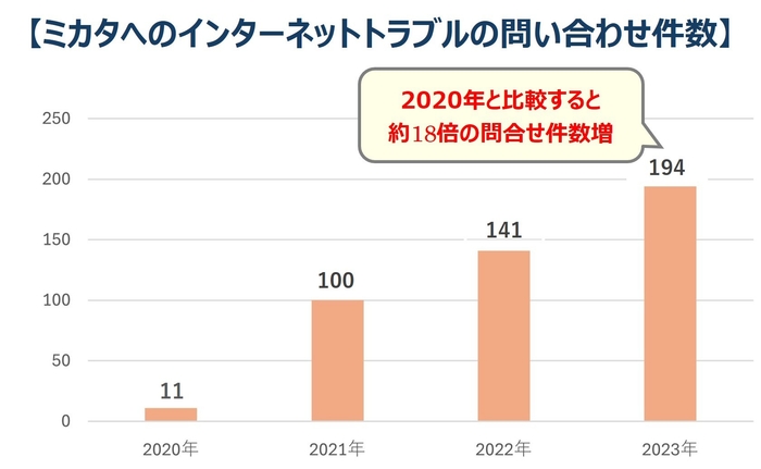 ■インターネットの普及と同時にサイバー犯罪も増加 ミカタへの問い合わせも3年で18倍増に