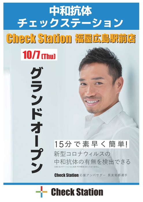 株式会社F.K.Solutionsはこの度、中国地方初となります、新型コロナウイルスの中和抗体検査キットの販売所『Check Station』(以下、チェックステーション)を福屋広島駅前店7階で10月7日(木)10時30分よりグランドオープンいたします。