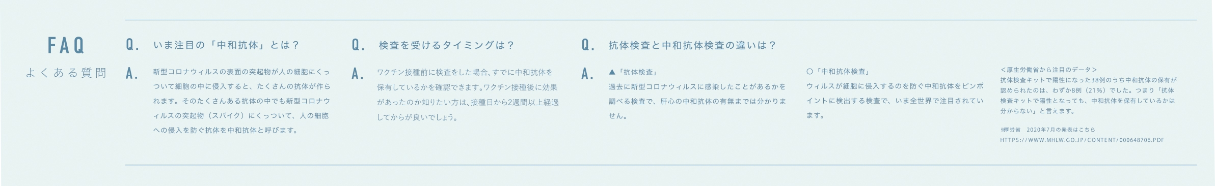チェックステーションでは、中和抗体検査できる為、今後の感染症対策や、長距離の移動をする際にご自身の行動を決定する際の判断材料として、非常に有益な情報となります。また、「中和抗体検査陰性」という結果になった場合も、今後も感染症対策をしっかり行うためにとても有益な気づきとなります。お立ち寄りいただき、ぜひ検査をされる事をおすすめいたします。