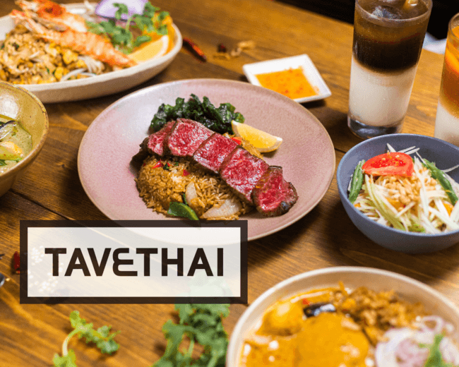 ※TAVETHAI(タベタイ)の語源は 居酒屋などを意味する TAVERN と THAI。ロゴにある EST- 2563 は、タイの仏暦 2563 年の今年、TAVETHAIを設立したことを意味します。