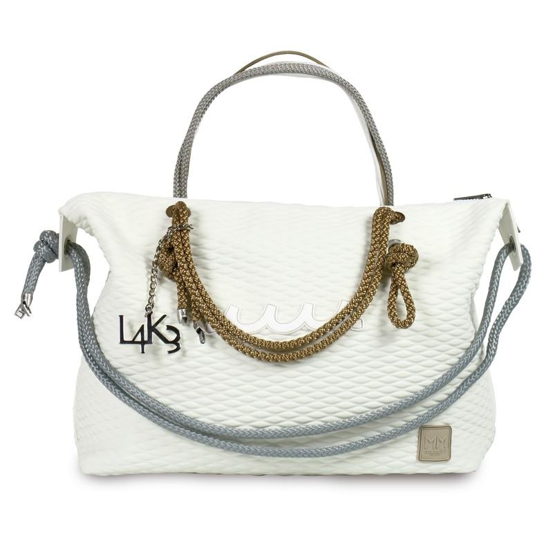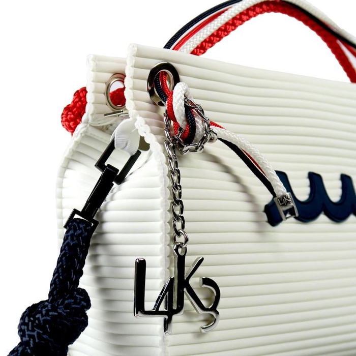 航海用ロープやウェットスーツの素材でも知られる”ネオプレン”などをファッションに取り入れた感度の高いアイテムを展開するイタリアブランド「L4K3(レイク)」から、「ラグジュアリー&ユニーク」をコンセプトとするラグジュアリーグッズブランド「muta(ムータ)」とのコラボレーションBAGが登場。世界でも有数のロープ生産ファクトリーという背景を持つL4K3が生み出すバッグにmutaのエッセンスが加わり、よりキャッチーに、よりラグジュアリーに進化したスペシャルバッグが誕生しました!