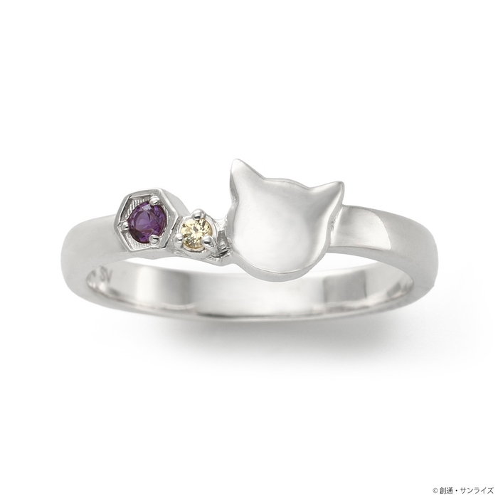 『機動戦士Gundam GQuuuuuuX』のニャアンをイメージしたシルバーリングです。ネコをモチーフに取り込んだゆるやかなV字ラインのデザインにイメージカラーストーンを2石セットしました。