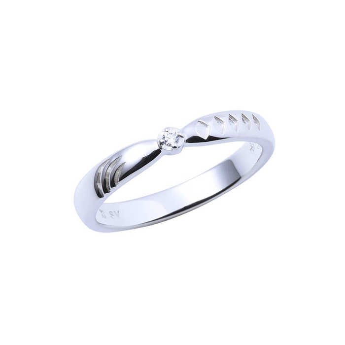 甲丸のストレートタイプのリングにネクタイのストライプ柄を取り込み、イメージカラーストーンをセット。内側には名前を刻印しました。