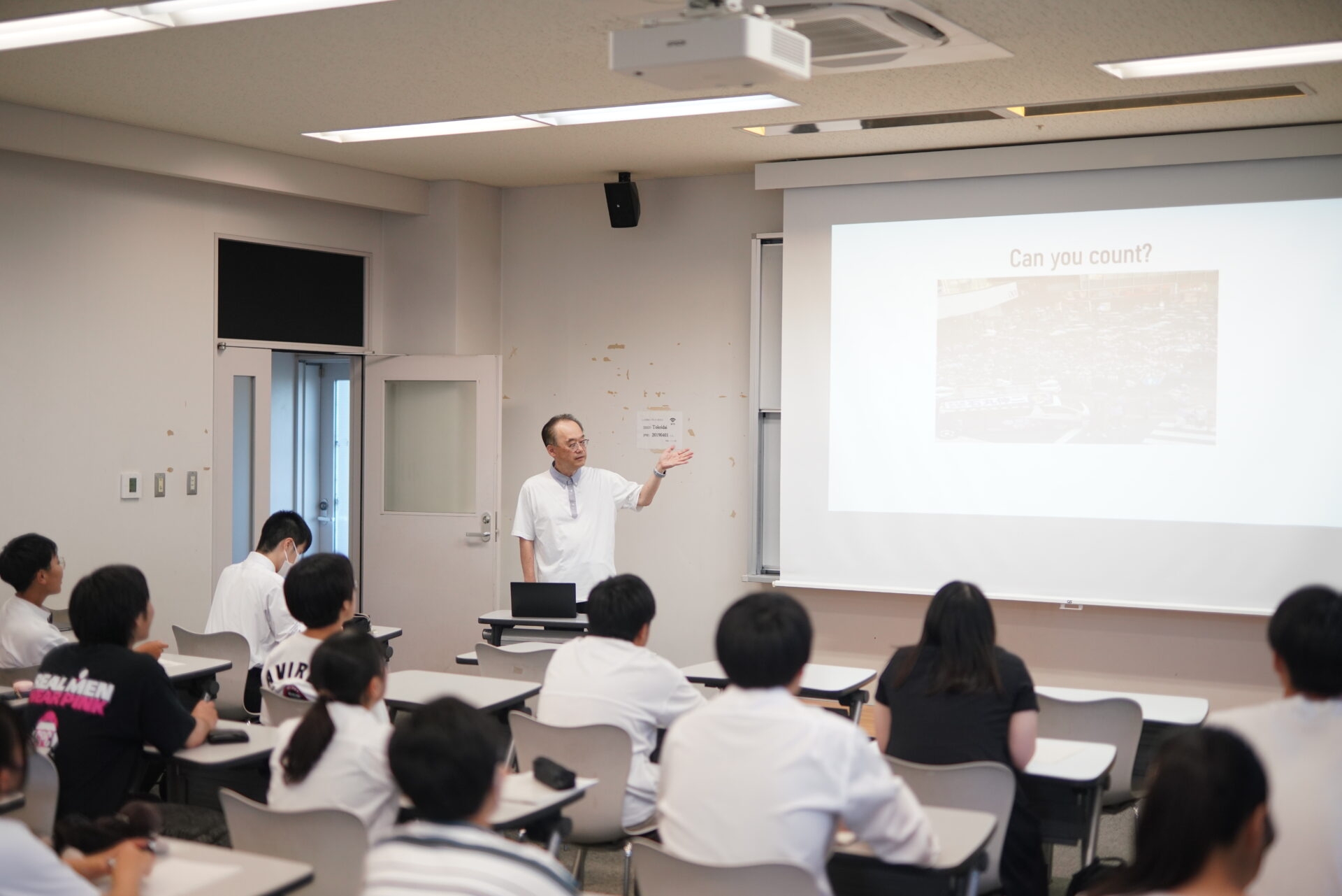 東京都知事選挙の話など、身近な話題を用いて新出表現を導入しました。ジョークを交えつつ、受講者の笑いを取りながら、楽しく授業が進みました。