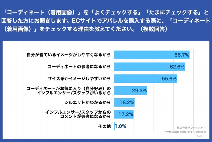 Z世代の99.0%が、ECでアパレルを購入する際に「コーディネート(着用画像)」をチェック