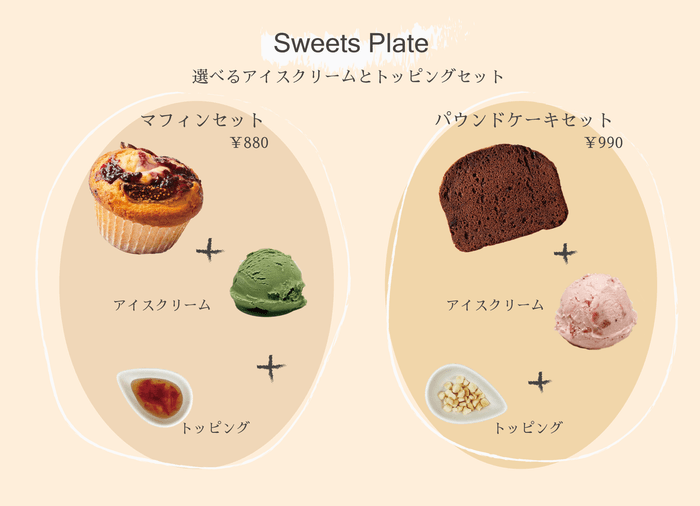 新たにメニューに加わったスイーツプレートは、マフィンセットとパウンドケーキセットの2種類。