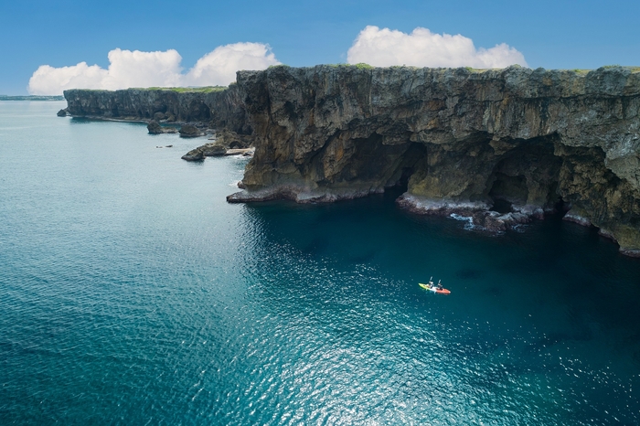 各施設が独創的なテーマで、圧倒的非日常を提供する「星のや」。沖縄県・読谷村にある滞在型リゾート「星のや沖縄」では、2022年6月1日~8月31日の期間、海岸線に潜む多様な絶景地を巡る「絶景カヤックジャーニー」を提供します。海岸線には、カヤックでしか辿り着くことができない絶景のポイントが多数点在します。ポイントの近くまではクルーザーで快適に移動し、その後は小回りの利くカヤックに乗り換えます。水面に近いカヤックからは、高さ30メートルの切り立つ岸壁や洞穴の神秘的な世界を間近に望むこともできます。河口付近でマングローブの茂みに分け入ることができるのも、カヤックならではの体験です。