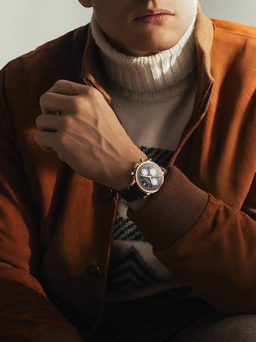 懐中時計の時代に発明され、腕時計の創世期から進化し続けてきた長い歴史をもつクロノグラフは、セクターダイアルが放つクラシカルな印象をより一層際立たせつつ、複雑機構を自分で操作する楽しみを味わうことができます。