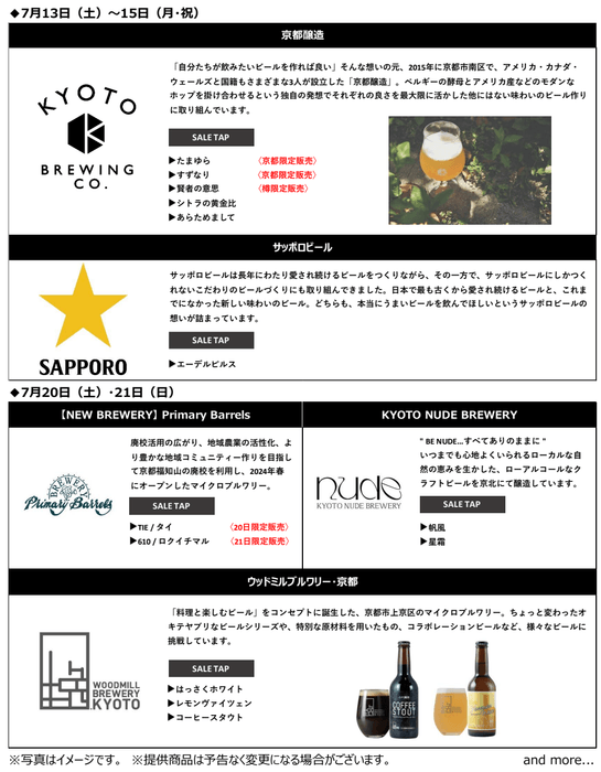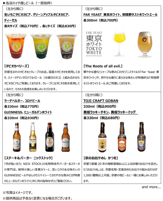・京都の最新&人気ブルワリーのクラフトビールや「サッポロビール」のおすすめ銘柄が楽しめる特設ブースが登場