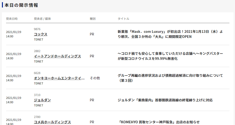 2.企業開示情報:TDnet、EDINETで開示された重要情報を提供