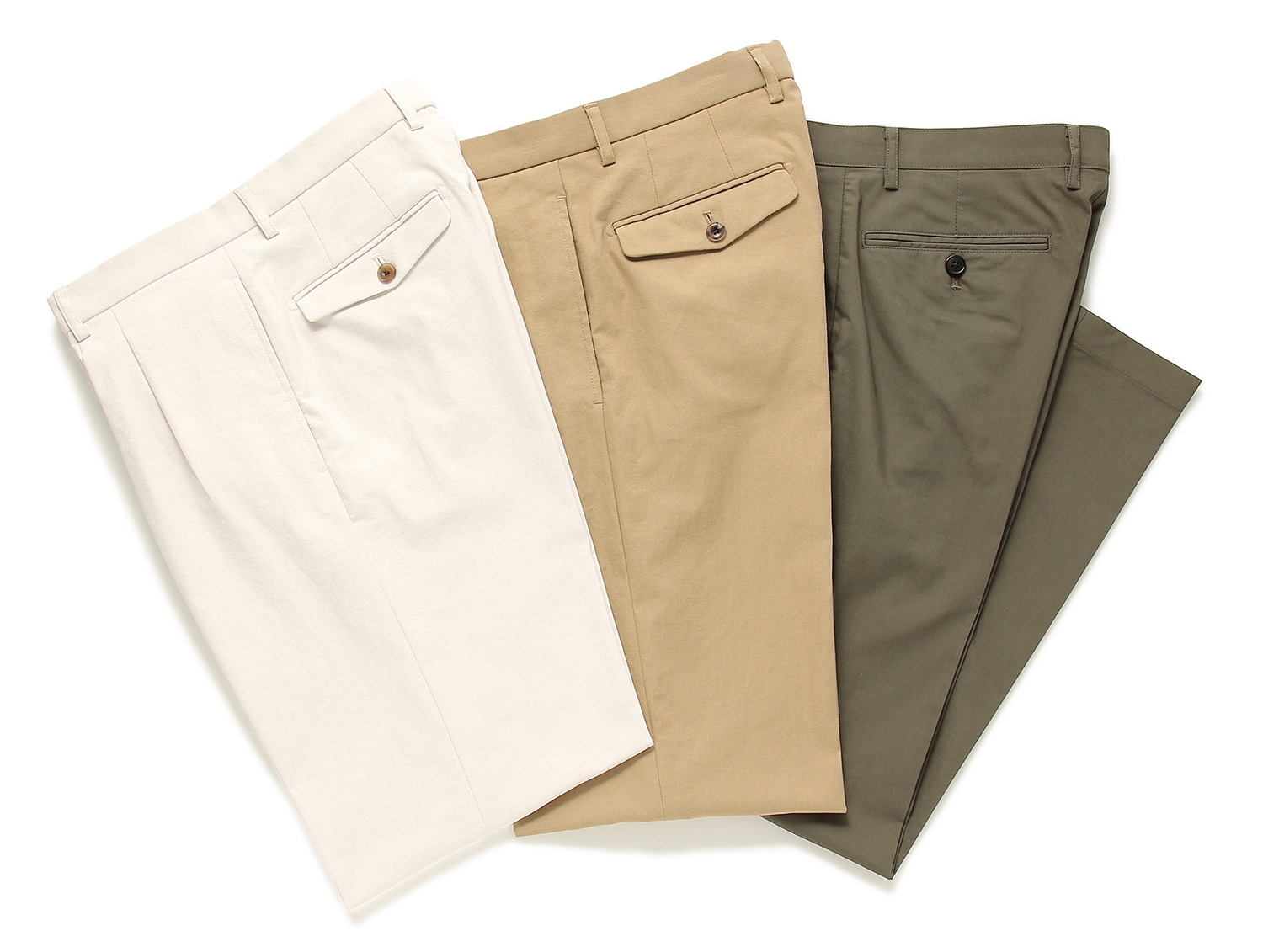 “ビジカジ”スタイルの浸透で「チノパン」人気が上昇中!高機能ブランド生地も取り扱い